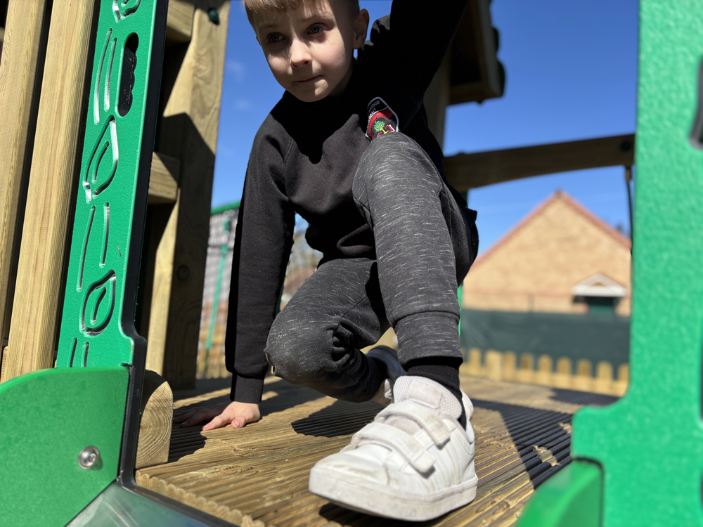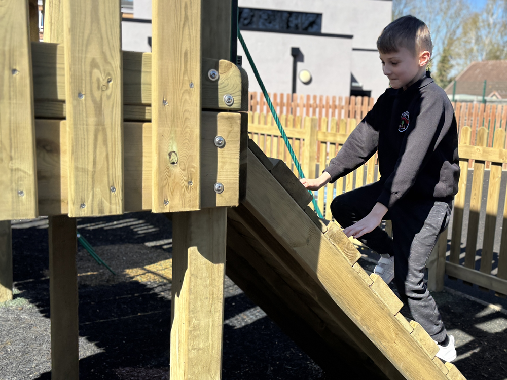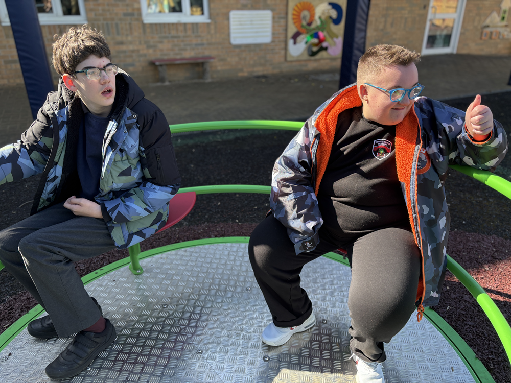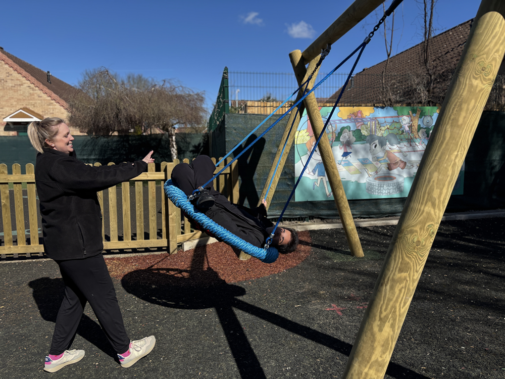 The new equipment offers children a wealth of benefits. The play tower, with wider walkways, encourages active, imaginative play while helping pupils build strength, coordination and confidence as they climb, balance and explore. The accessible roundabout ensures that children of all abilities can join in the excitement together, promoting inclusion and shared experiences. Meanwhile, the new swings provide a calming yet stimulating activity that supports sensory regulation and helps children develop core stability and spatial awareness.